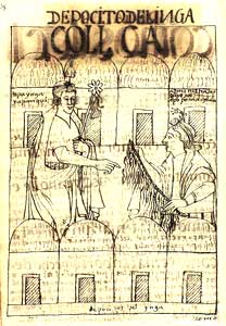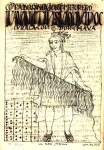 Illustrations from 1615 by the "Indian Chronicler" Felipe Guaman Poma de Ayala about the quipu