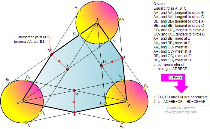Problem 345. Equal circles, Tangents, Concurrent lines, Hexagon,