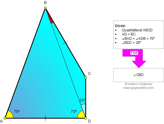 Online Geometry Problem 832: Quadrilateral, Isosceles triangle, 70-70-40