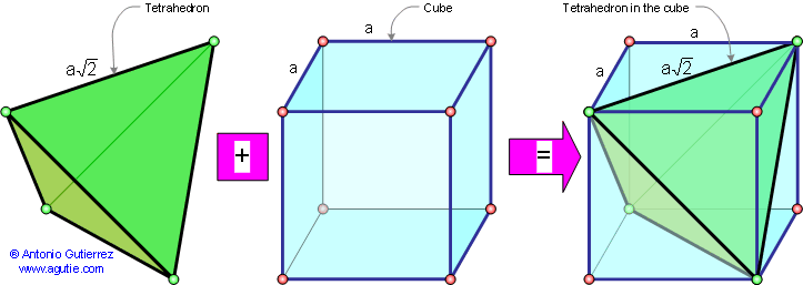 The triangle formed by connecting diagonals of three adjacent faces of the cube is the face of the tetrahedron within the cube.